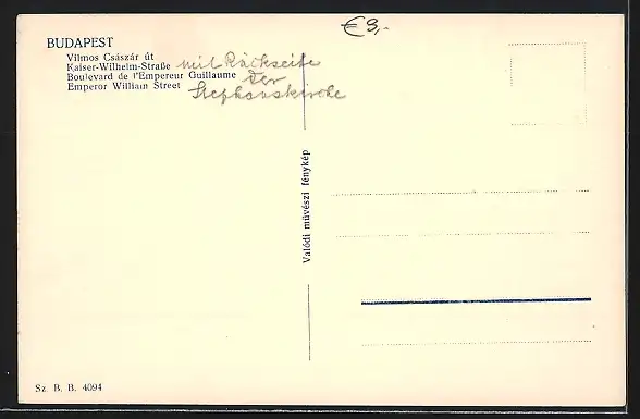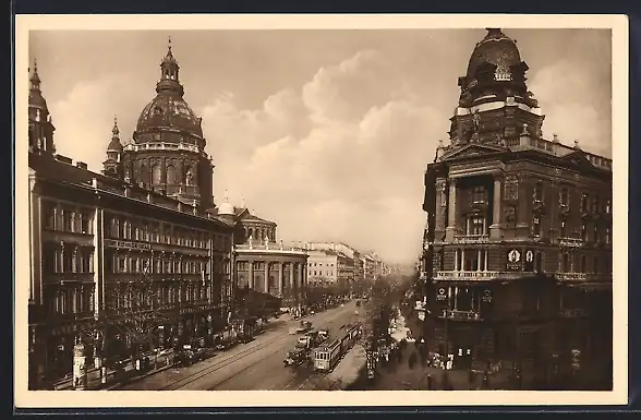 AK Budapest, Kaiser-Wilhelm-Strasse mit Strassenbahn
