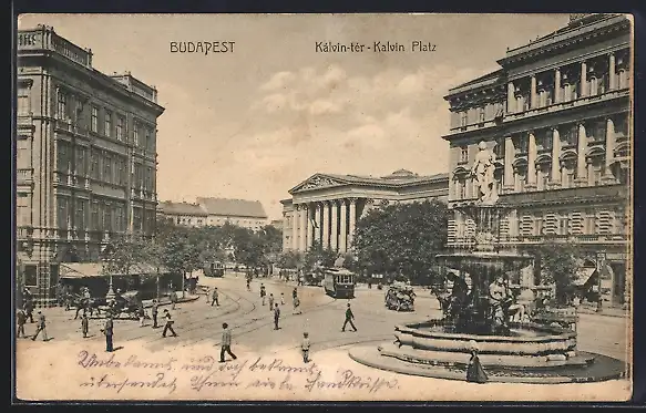 AK Budapest, Kalvin-Platz mit Strassenbahnen