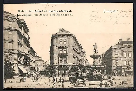 AK Budapest, Kálvin tér József és Baross utczával, Strassenbahn