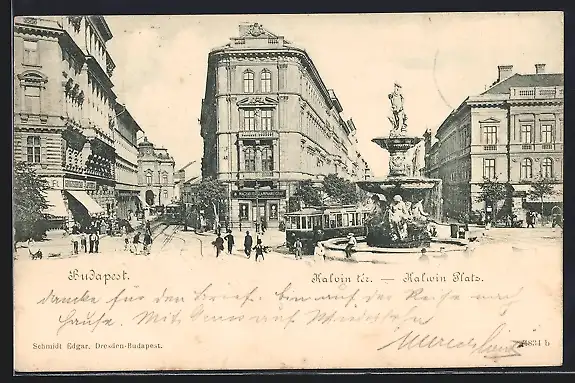 AK Budapest, Kalvin tér, Strassenbahn