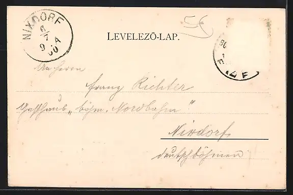 alte Ansichtskarte, gelaufen 1900, Briefmarke entfernt, rückseitig Oberflächenschaden, guter Zustand