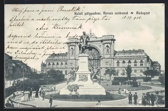 AK Budapest, Keleti palyaudvar, Baross szoborral