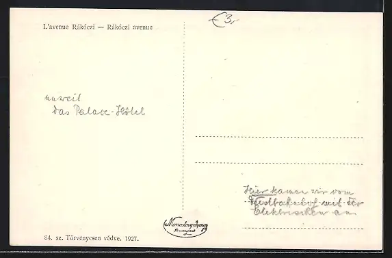 AK Budapest, Rákóczi Strasse mit Strassenbahn