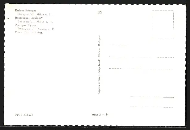 AK Budapest, Restaurant Kulacs, Miksa u. 11, Innenansicht