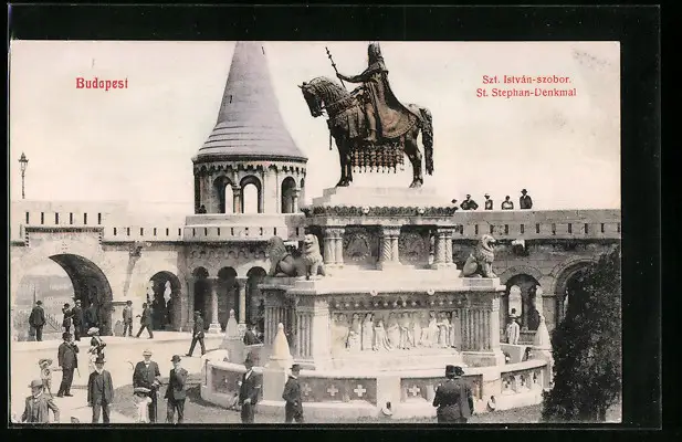 AK Budapest, St. Stephan-Denkmal