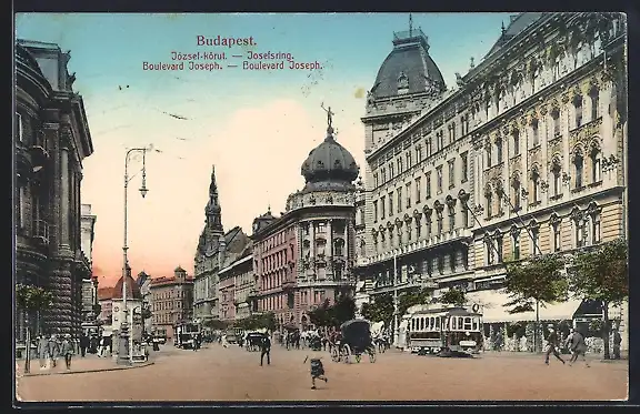 AK Budapest, Strassenbahn am Josefring