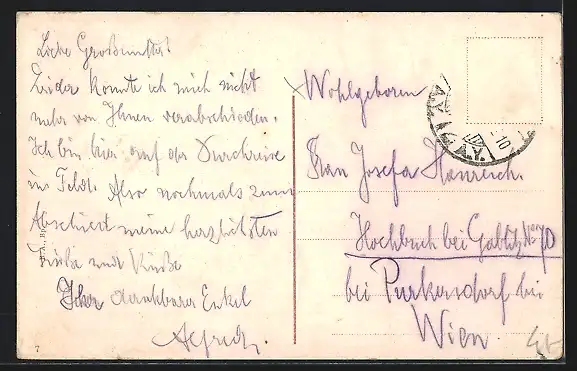 alte Ansichtskarte, gelaufen, Briefmarke entfernt, guter Zustand