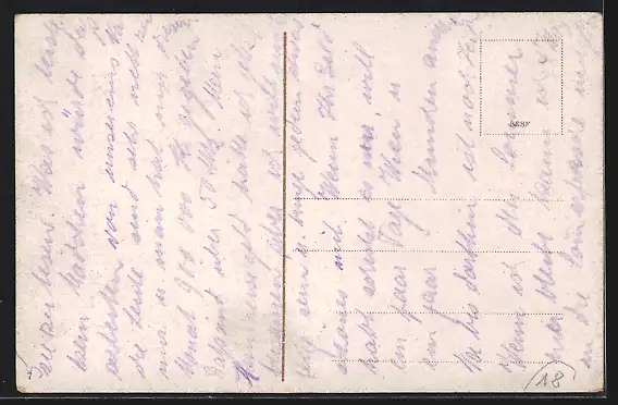 Personenbezogene Daten auf der Rückseite der Karte wurden durch blauen Textmarker unkenntlich gemacht. Die blauen Stellen sind auf die Vorderseite durchgeweicht und wirken sich negativ auf das Postkartenfoto aus
