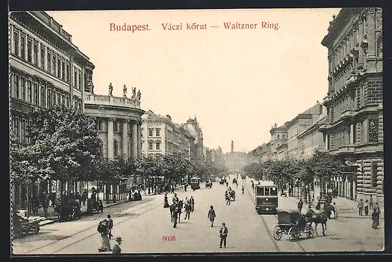 AK Budapest, Váczi körut, Waitzner-Ring, Strassenbahn, Pferdekutsche
