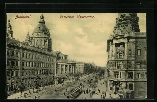 AK Budapest, Waitznerring mit Strassenbahn