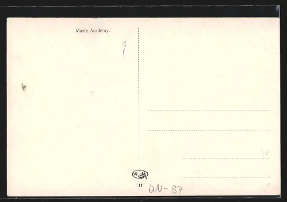 Personenbezogene Daten auf der Rückseite der Karte wurden durch blauen Textmarker unkenntlich gemacht. Die blauen Stellen sind auf die Vorderseite durchgeweicht und wirken sich negativ auf das Postkartenfoto aus