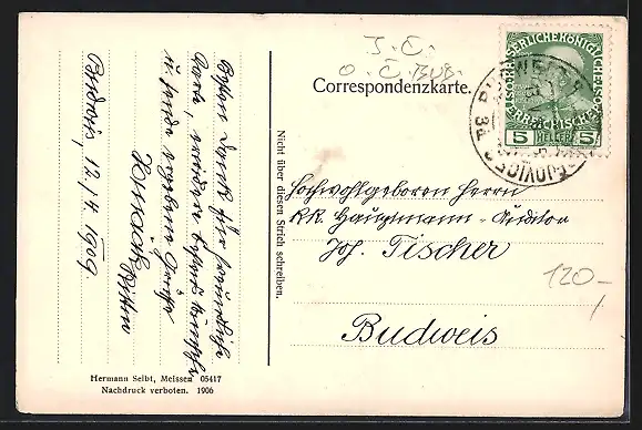alte Ansichtskarte, gelaufen 1909, guter Zustand