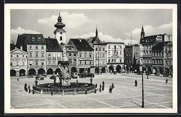 AK Budweis / Ceske Budejovice, Ringplatz mit Samsonbrunnen