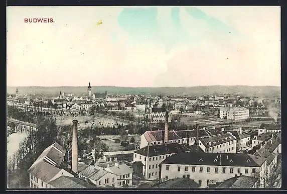 AK Budweis, Panoramablick über die Stadt