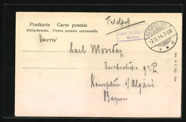 alte Ansichtskarte, gelaufen 1914, guter Zustand