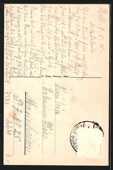 alte Ansichtskarte, gelaufen, Briefmarke entfernt, rückseitig Oberflächenschaden, guter Zustand