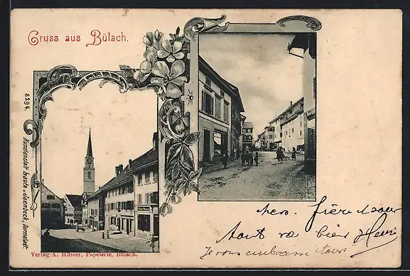 AK Bülach, Ortspartien mit Wohnhäusern und Kirche