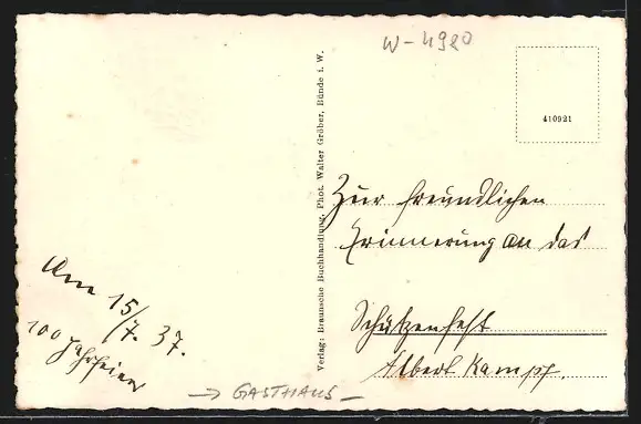 ungelaufen, Rückseite beschrieben 1937, guter Zustand