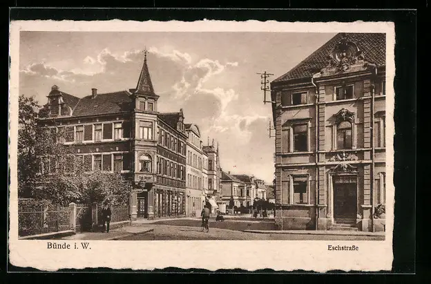 AK Bünde i. W., Eschstrasse mit Gasthaus Aug. Meyer