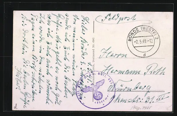 alte Ansichtskarte, gelaufen 1941 als Feldpost, guter Zustand