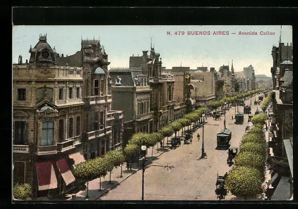 AK Buenos Aires, Avenida Callao, Strassenbahnen