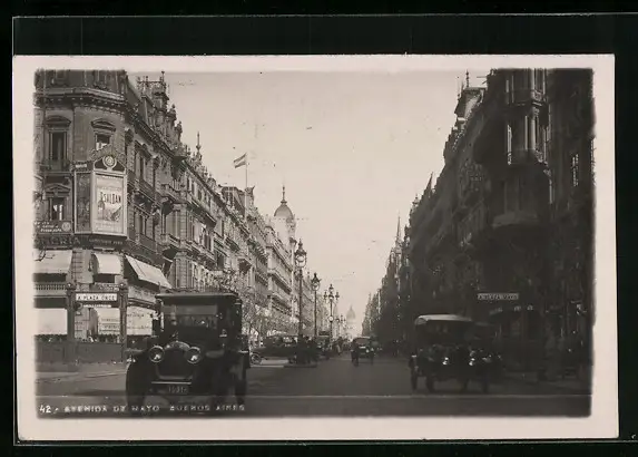 AK Buenos Aires, Avenida de Mayo, Autoverkehr im Zentrum