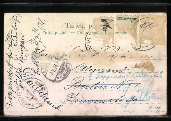 gelaufen 1906, Briefmarke entfernt, rückseitig Klebe- und Papierreste, rückseitig Oberflächenschaden, guter Zustand