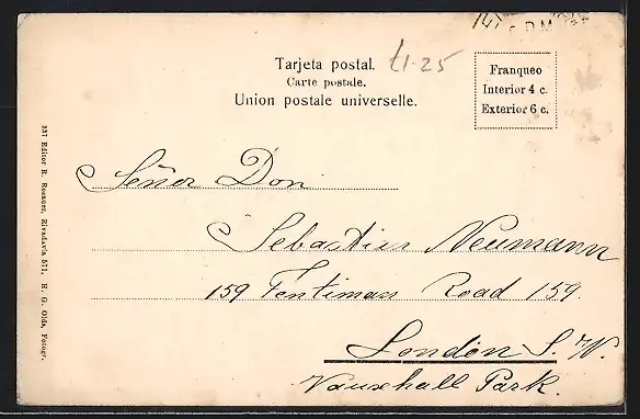 alte Ansichtskarte, gelaufen, Briefmarke entfernt, Eckknick unten re., guter Zustand