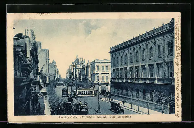 AK Buenos Aires, Venida Callao, Strassenbahn