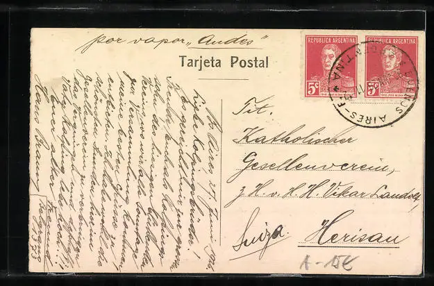 alte Ansichtskarte, gelaufen, Bugspur unten links, guter Zustand