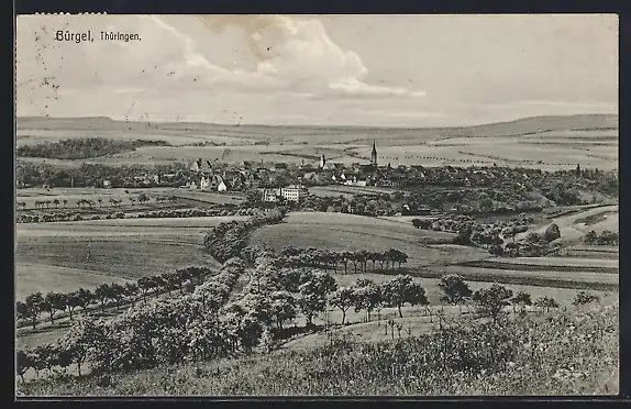 AK Bürgel /Thüringen, Teilansicht mit Bäumen