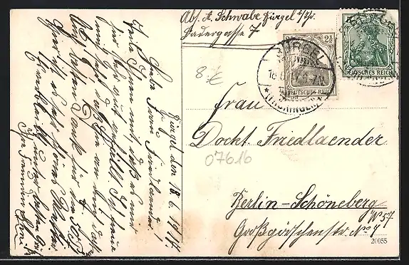alte Ansichtskarte, gelaufen 1917, Briefmarke entfernt, Eckknick li. oben, Stempelspur