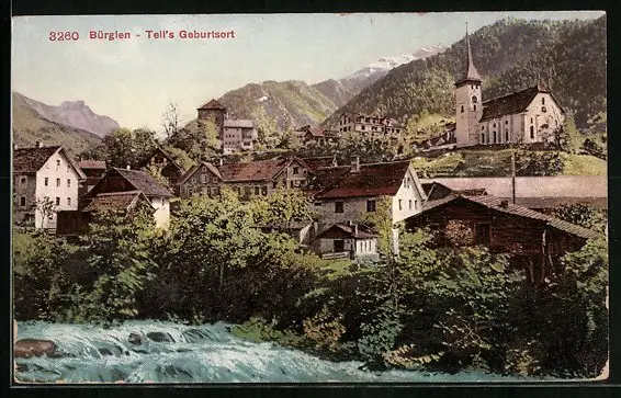 AK Bürglen, Ortsansicht vom Ufer aus, Tell's Geburtsort