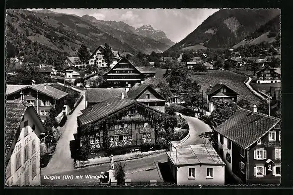 AK Bürglen, Teilansicht mit Gasthaus Adler aus der Vogelschau