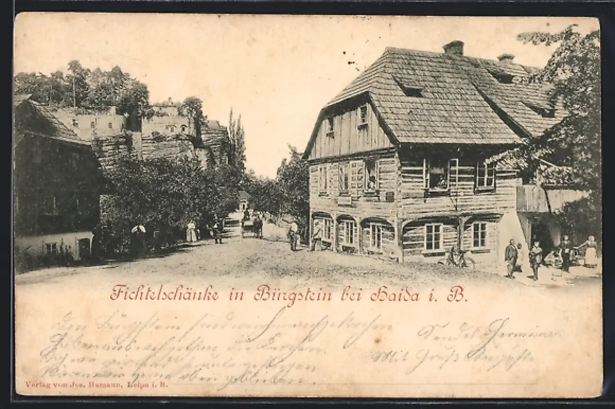 AK Bürgstein, Strassenpartie am Gasthaus Fichtelschänke