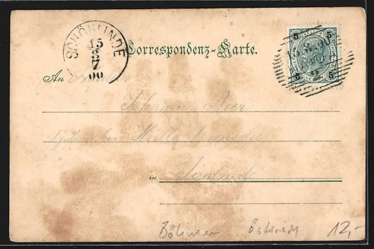alte Ansichtskarte, gelaufen 1900, guter Zustand