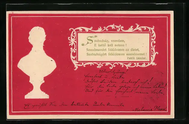 AK Büste des Dichters Petófi Sándor, kurzes Gedicht