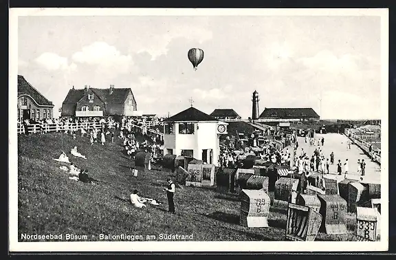 AK Büsum, Ballon über dem Nordseebad, Leuchtturm