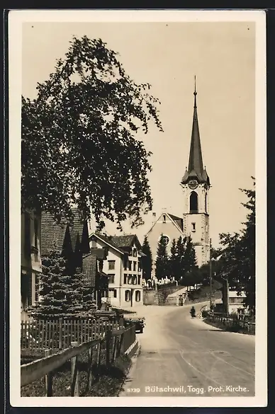 AK Bütschwil /Togg., Prot. Kirche, Strassenpartie