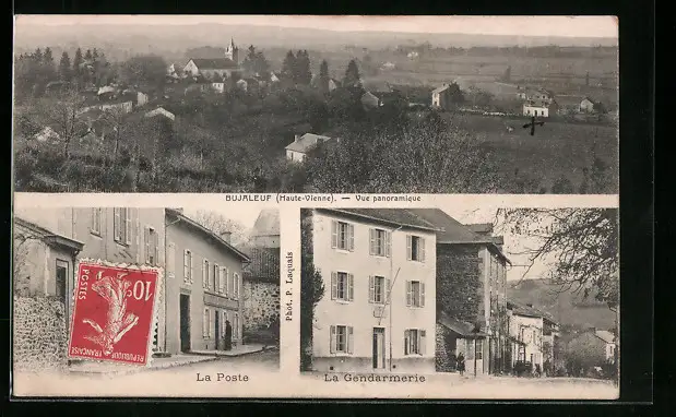 AK Bujaleuf, Vue panoramique, La Poste, La Gendarmerie