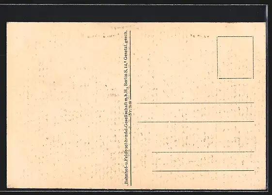 Personenbezogene Daten auf der Rückseite der Karte wurden durch blauen Textmarker unkenntlich gemacht. Die blauen Stellen sind auf die Vorderseite durchgeweicht und wirken sich negativ auf das Postkartenfoto aus