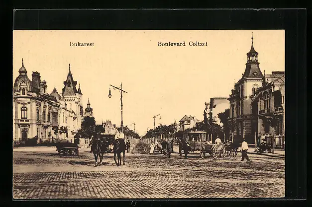 AK Bukarest, Boulevard Coltzei mit Strassenbahn
