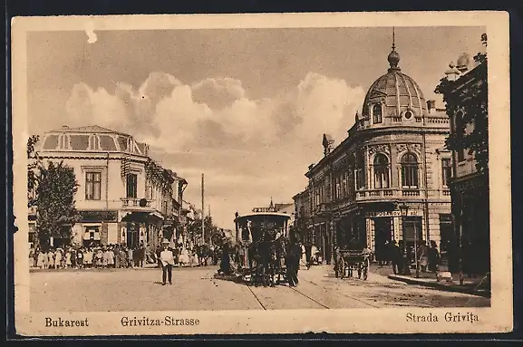AK Bukarest, Grivitza-Strasse mit Pferdebahn
