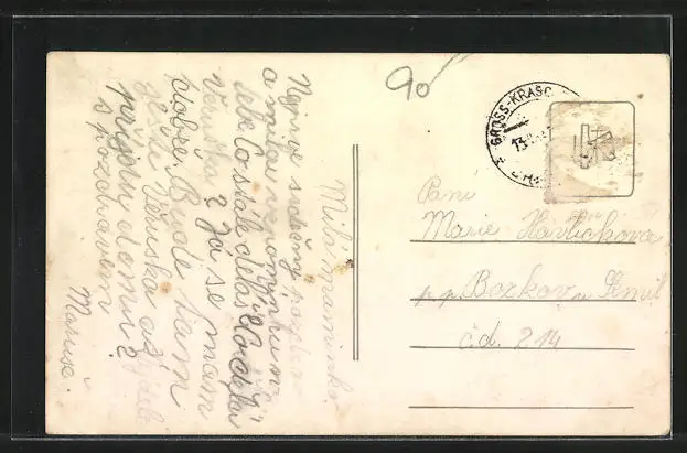 alte Ansichtskarte, gelaufen, Briefmarke entfernt, Bugspuren oben und unten