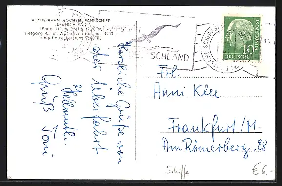 AK Bundesbahn-Hochsee-Fährschiff Deutschland in voller Fahrt