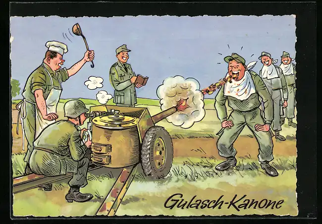 AK Bundeswehrsoldaten in Uniform vor einer Gulaschkanone