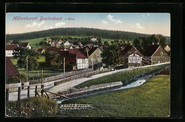 AK Buntenbock /Harz, Ortspartie mit Bachlauf