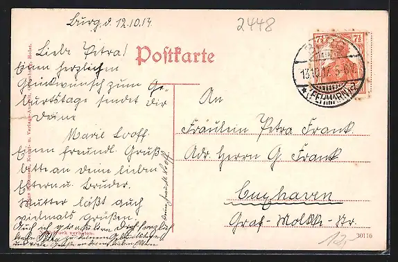 alte Ansichtskarte, gelaufen 1917, Eckknick oben re., Einriss re., guter Zustand