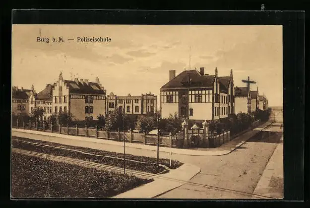 AK Burg b. M., Strassenpartie an der Polizeischule