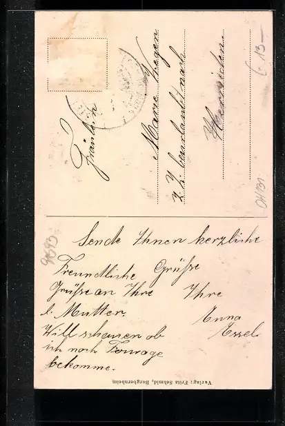 alte Ansichtskarte, gelaufen, Briefmarke entfernt, rückseitig Oberflächenschaden, guter Zustand